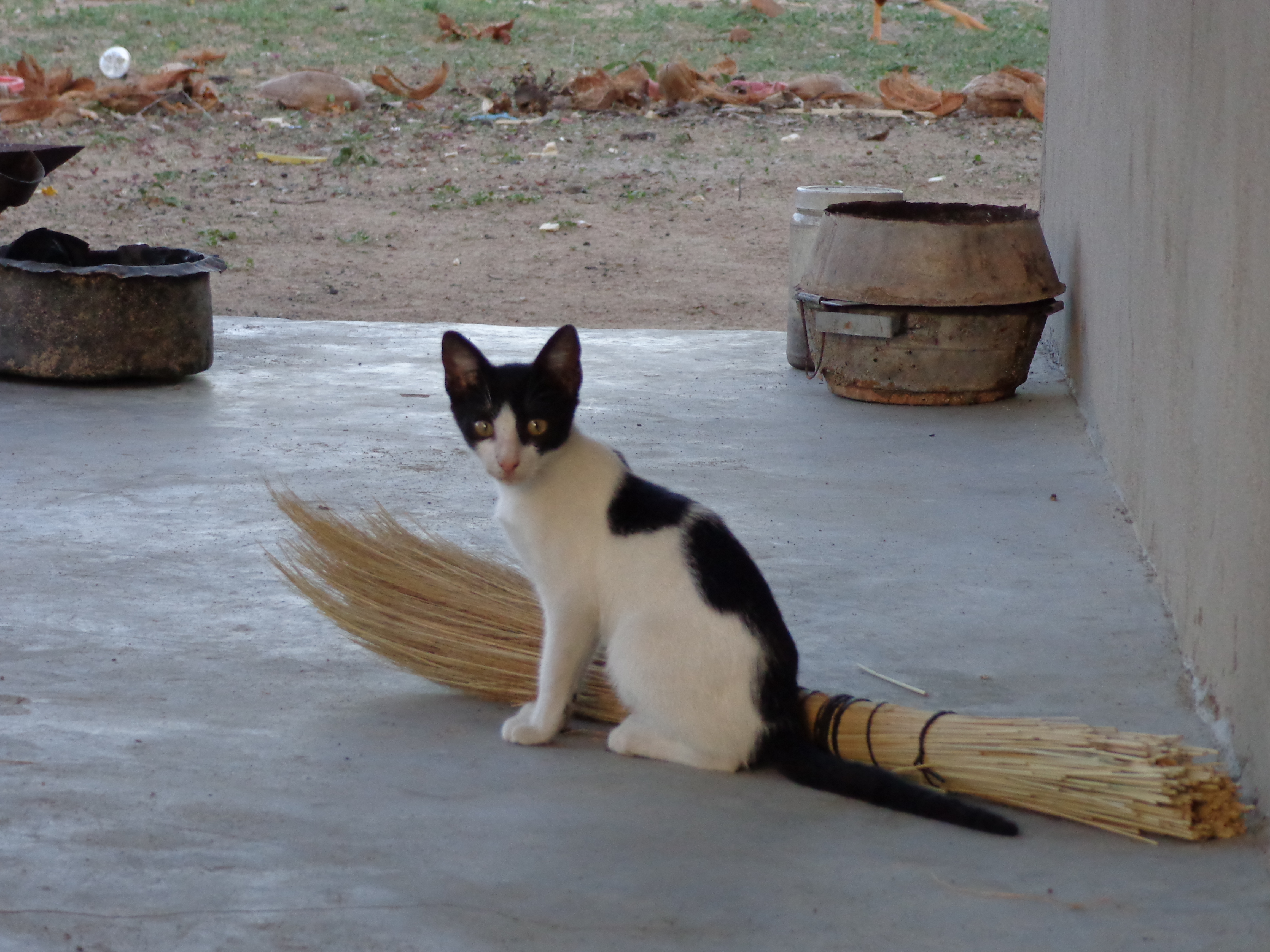 One other notable characteristic of life here is the animal presence. Firstly, there are chickens everywhere. Everywhere. It’s pretty amusing. Also, we have a small goat that unfortunately has a broken leg. He’s just a bit pitiful, hobbling around, but the bad leg doesn’t stop him from going places where he shouldn’t, like on the mattress, or through the pile of cut potatoes. Others in the village own goats and chickens as well, along with ducks and cows. Secondly, there are wild creatures present as well. Nothing big – no lions in the backyard or baboons at the window – but lots of creepy crawlers, like scorpions, cockroaches, rats, mice, lizards, big spiders, and other disturbing bugs. We have bats too, but I like bats and don’t find them creepy. Also, a mama paka (cat) and her kitten randomly appeared a few days ago. I guess they’re part of the family now too, which is fine with me.