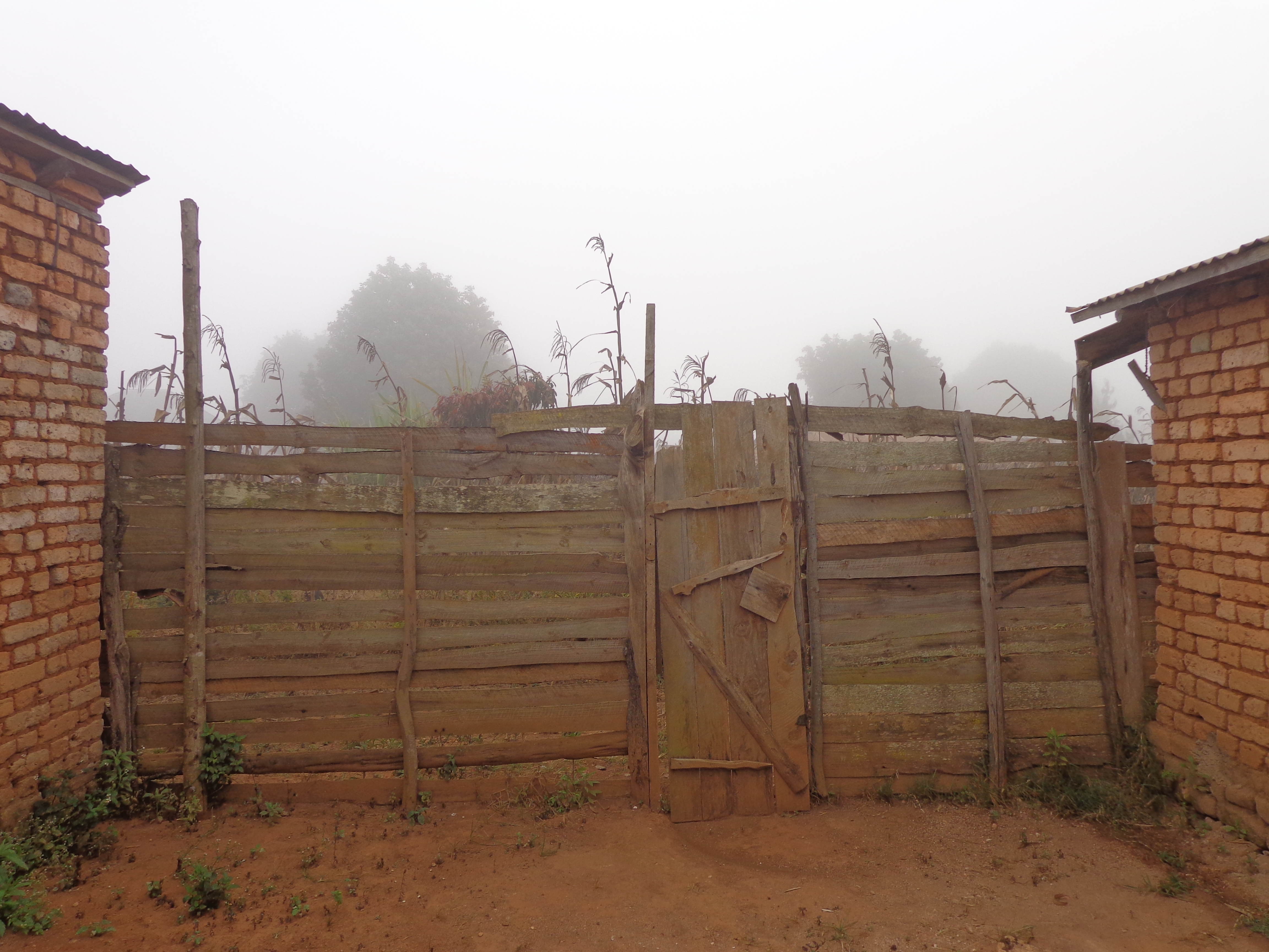 (My fence from inside my courtyard on a foggy morning…)