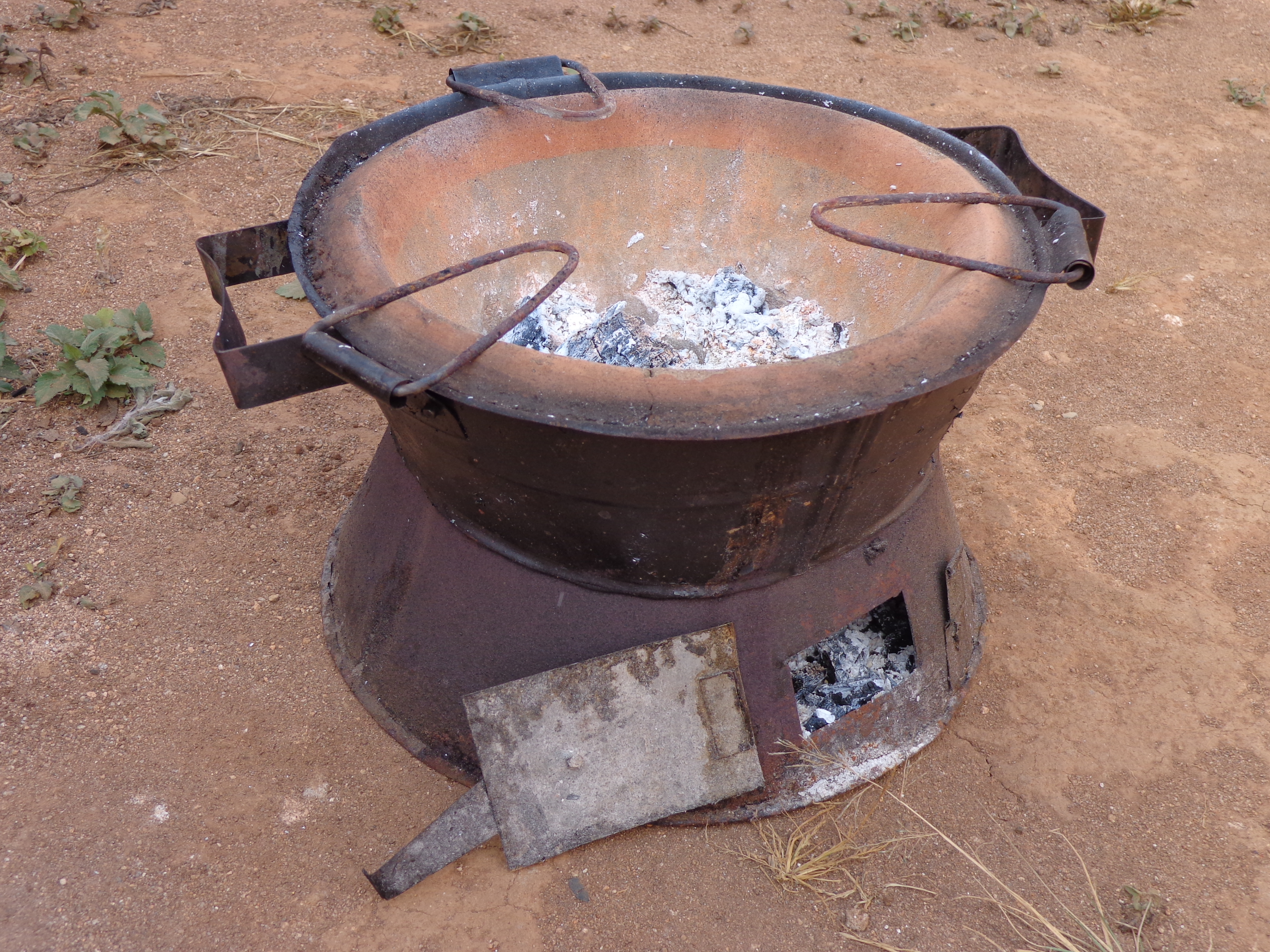 As a side note, here is how I bake in the vil: I have my charcoal jiko, stove (usually with charcoal in it, unlike my picture). Then I have two large pots (sufuria-s), one with three rocks in the bottom. You set the pot that will have the batter in it (when I’m actually baking and not just taking pictures) on top of those rocks. Then, big pot covers other big pot with little pot inside on the rocks, big pots go on top of the jiko, and a blanket goes on top of that to help with insulation – heat likes to rise, after all…