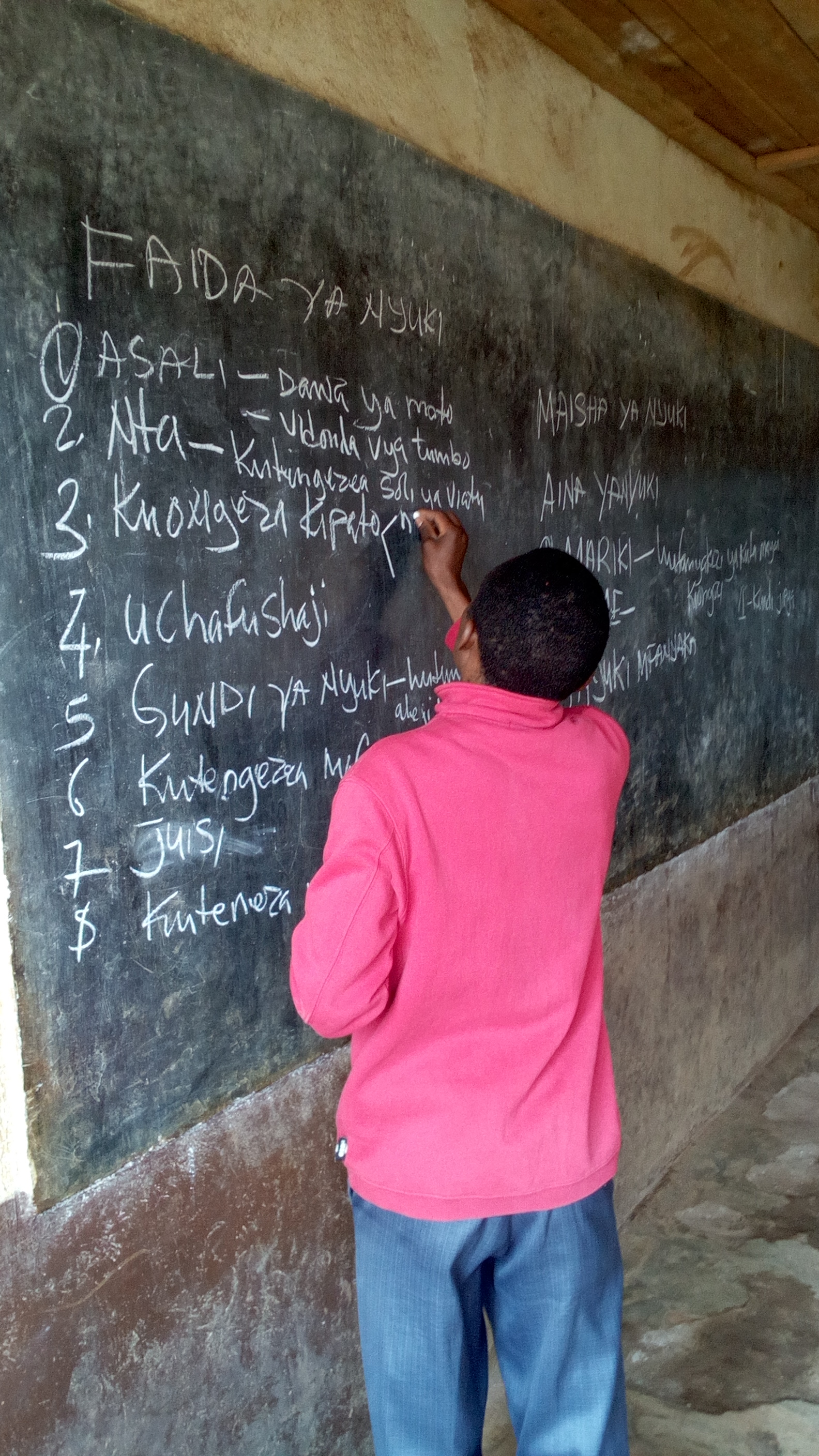 Our plan now is to do two more trainings on bees: one, a beehive building demonstration to teach how to construct the modern top-bar beehives that we made at our training in Morogoro, and two, a video viewing of a few Swahili videos that show the honey harvesting process, among other things. We also hope to have another training for those who want to learn about the more meaty livestock – goats and pigs. To be planned upon my return from climbing Kili.