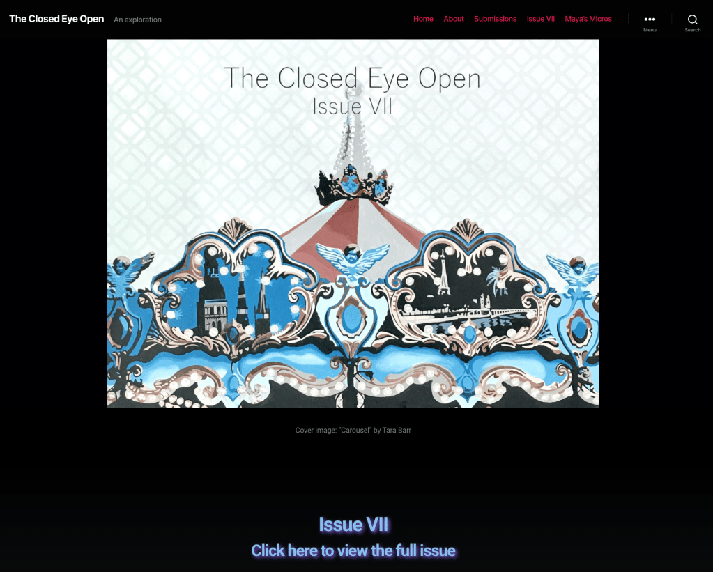 The Closed Eye Open, which publishes an online journal, included one of my poems, “On Being Watched by Birds,” in Issue VII published in June.